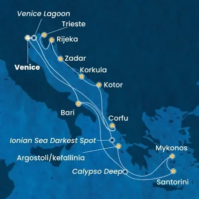 La compagnie italienne propose plusieurs croisières incluant Korčula dans leurs itinéraires adriatiques.