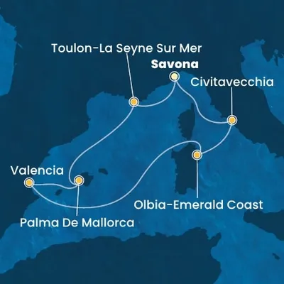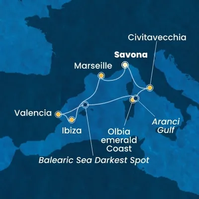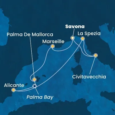 Le Costa Pacifica est un navire de croisière qui appartient à la flotte de la compagnie de croisière Costa comme le Toscana, le Serena ou encore le Deliziosa. Baptisé en 2009, ce navire a pour thème principal, la musique. Ce navire vous offre une expérience de voyage riche avec de nombreuses options de restauration, des divertissements variés, des installations bien-être et des activités pour tous les âges. C'est le bateau idéal pour les voyageurs en quête de détente ou d'aventure, il propose des croisières dans les destinations méditerranéennes et au-delà.
