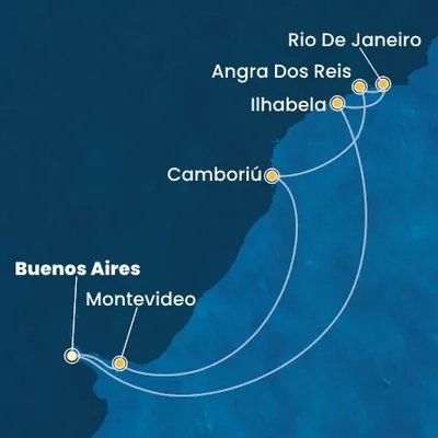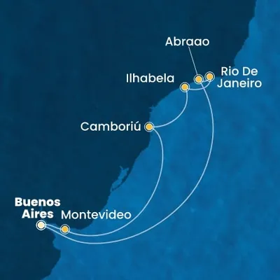 Buenos Aires (Argentine), Montevideo (Uruguay), Punta Del Este (Uruguay), Camboriú (Brésil), Abraão (Brésil), Rio De Janeiro (Brésil), Ilhabela (Brésil)