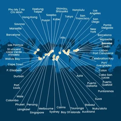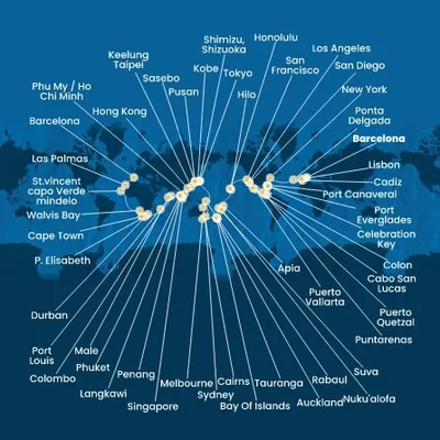 Miami (États-Unis), George Town (Îles Caïmans), Carthagène (Colombie), Puerto Quetzal (Guatemala), Acapulco (Mexique), Manzanillo (Mexique), San Diego (États-Unis), Los Angeles (États-Unis), Kahului (États-Unis), Nawiliwili, Kauai (États-Unis)...
