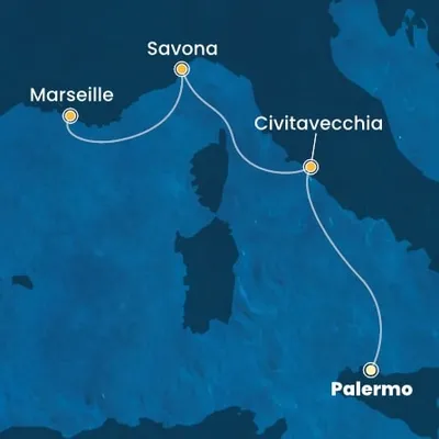 Palerme (Italie), La Valette (Malte), Barcelone (Espagne), Gibraltar (Gibraltar), Casablanca (Maroc), Las Palmas (Espagne), Maceio (Brésil), Salvador (Brésil), Rio De Janeiro (Brésil), Montevideo (Uruguay)...